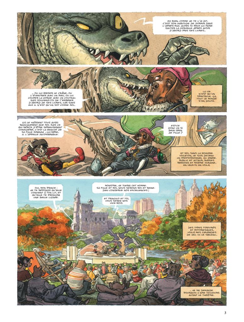 Une fois de plus, Juanjo Guarnido nous en met plein les yeux avec des personnages anthropomorphes sublimes et des décors fabuleux. Avec un découpage numérique lisible et élégant, un encrage parfait et des couleurs à l’aquarelle appliquées avec délicatesse, il nous entraîne dans un récit captivant. Que ce soit sous la terre, sur le sol ou dans les hauteurs, ses mises en scène et sa science du mouvement font mouche. Chaque planche est un enchantement. L’artiste a composé ses acteurs avec malice et on se régale à l’avance à essayer de deviner lequel se transformera prochainement en statuette. Carlos, le porc épic ou Iris l’alpaga ? Les bêtes véhiculent les stéréotypes avec une efficacité redoutable et l’action est toujours astucieusement représentée. L’artiste, lauréat du prix national de la BD et du Eisner Award a une technique époustouflante et un univers graphique réaliste singulier et fascinant. Dans ce sixième opus, il glisse çà et là des clins d’œil appuyés aux superhéros qu’il adore.