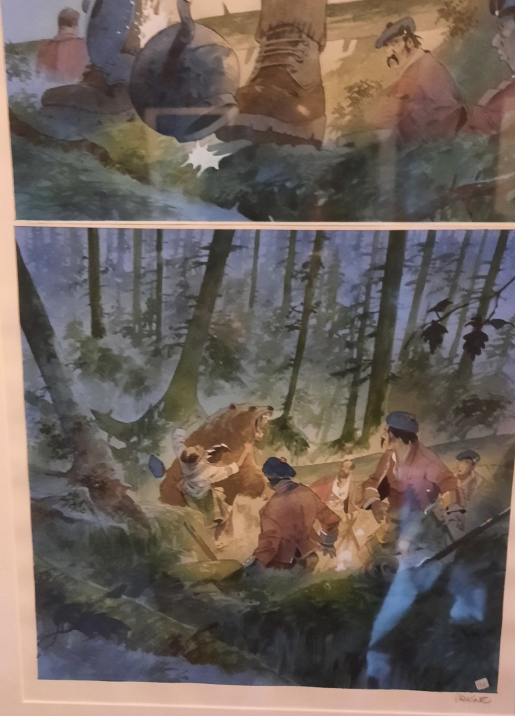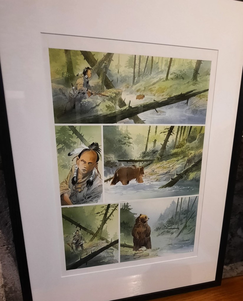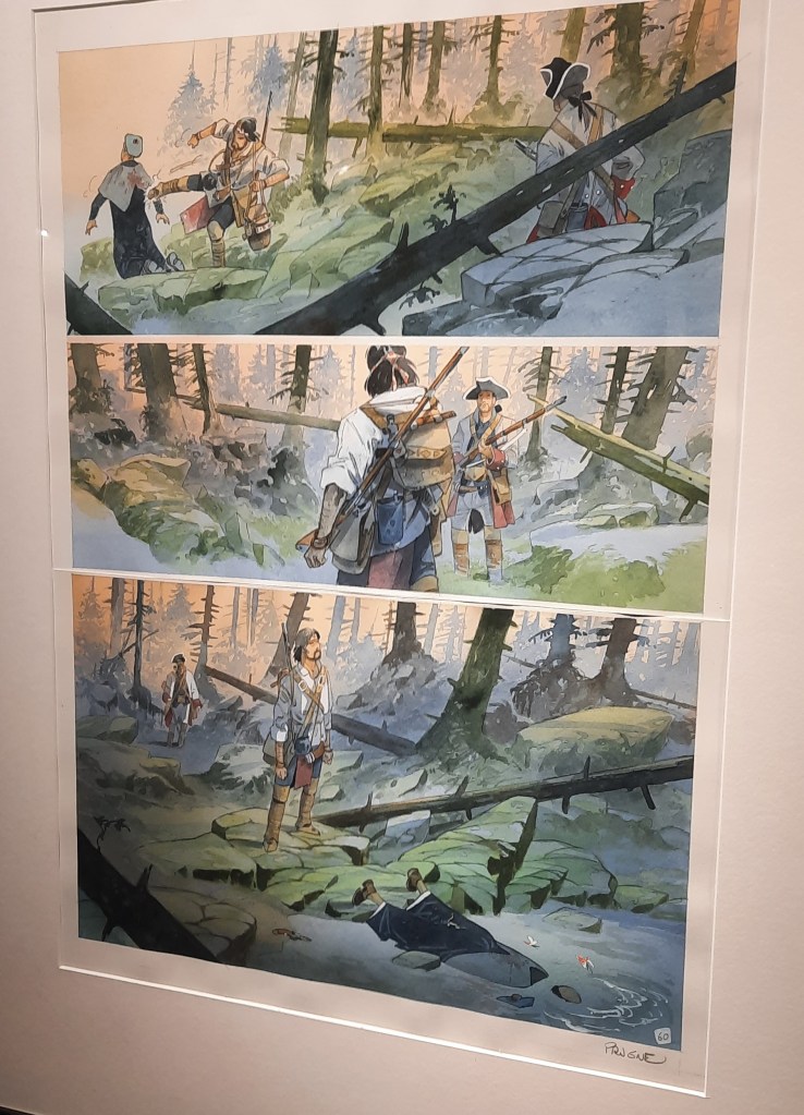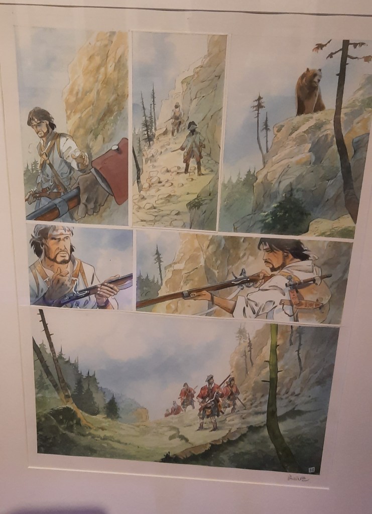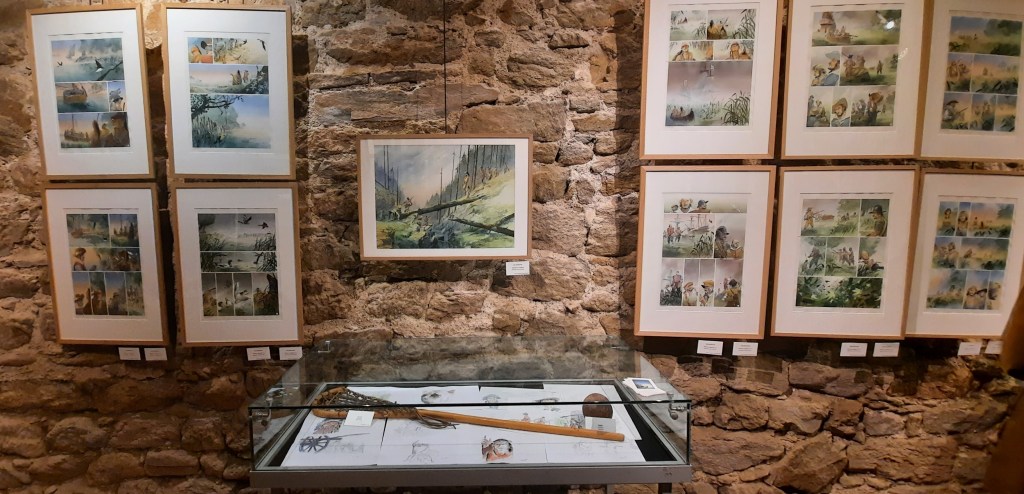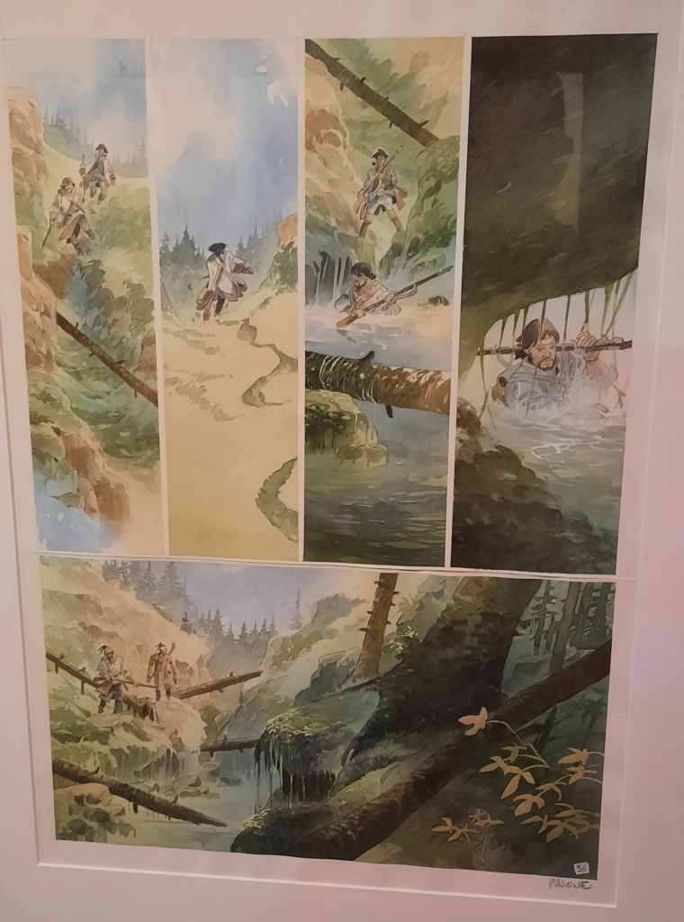 Située à la tour Bidouane de Saint Malo, elle offre dans un cadre exceptionnel composé de pierres apparentes et de bois un coup de projecteur intelligent sur une partie de l’œuvre d’un scénariste et dessinateur de bande dessinée qui au fil du temps s’est imposé en partie par sa connaissance aiguisée du continent nord-américain, de sa nature sauvage et de ses tribus amérindiennes.