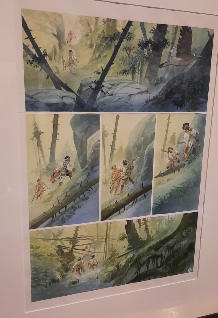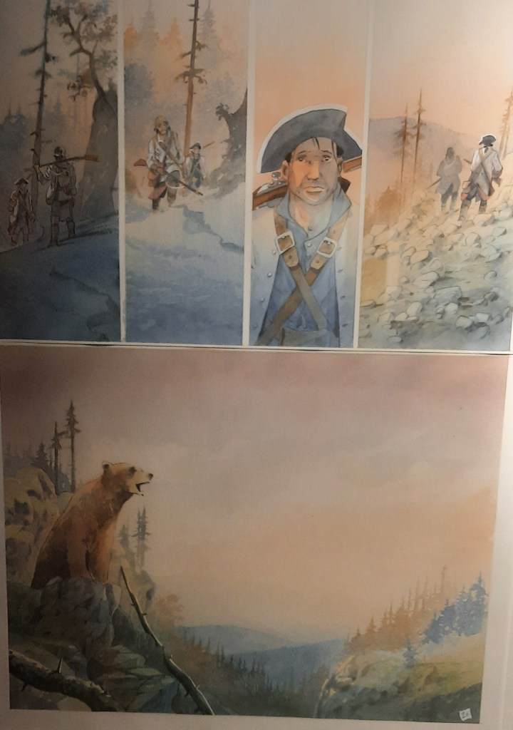 Les illustrations des albums Canoë bay, Frenchman, Pawnee, Iroquois, Vanikoro et Tomahawk édités par les Editions Daniel Maghen sont bien représentés avec en exclusivité quelques planches de l’album Pocahontas en cours de réalisation. Elles réjouiront les amateurs les plus impatients qui pourront entrevoir dès maintenant les premières traces d’un projet engageant et prometteur.