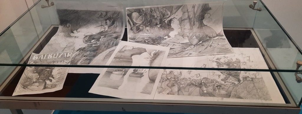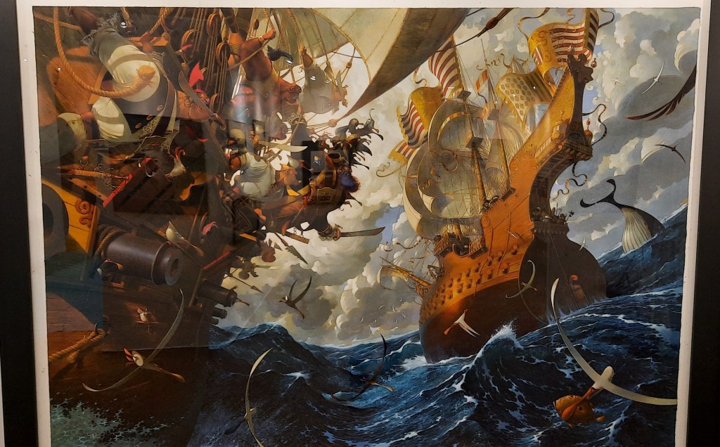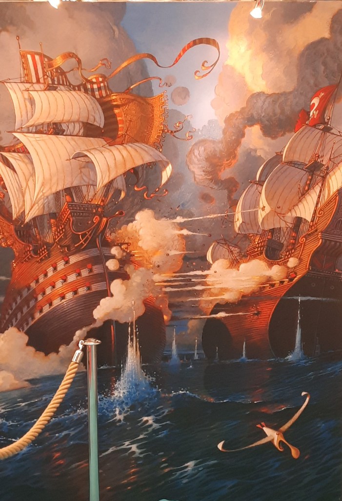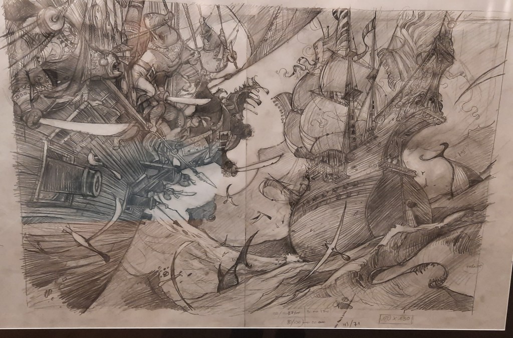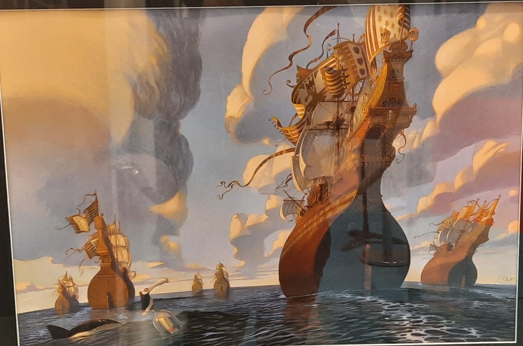 On pouvait admirer ses héros les plus célèbres et revisiter en sa compagnie les contes qui bercèrent notre enfance. Les esquisses présentes ça et là permettaient d’admirer la composition inspirée des images et les très nombreux détails. La scénographie mettait parfaitement en relief une maîtrise étonnante de la colorisation à l’acrylique ou à l’aquarelle et l’usage toujours judicieux de nombreux effets qui nous en mettent plein les yeux.