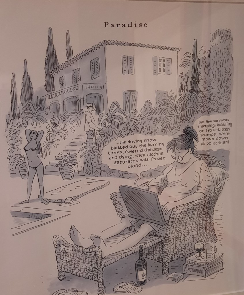 Au fil des années, elle nous a émerveillés avec des romans graphiques somptueux comme Gemma Bovery, Tamara Drewe et Cassandra Darke édités chez Denoël Graphic dont on est ravis de retrouver de nombreuses planches. La collaboratrice de The Guardian, reine du pastiche, satiriste habile ne cesse de nous séduire.
