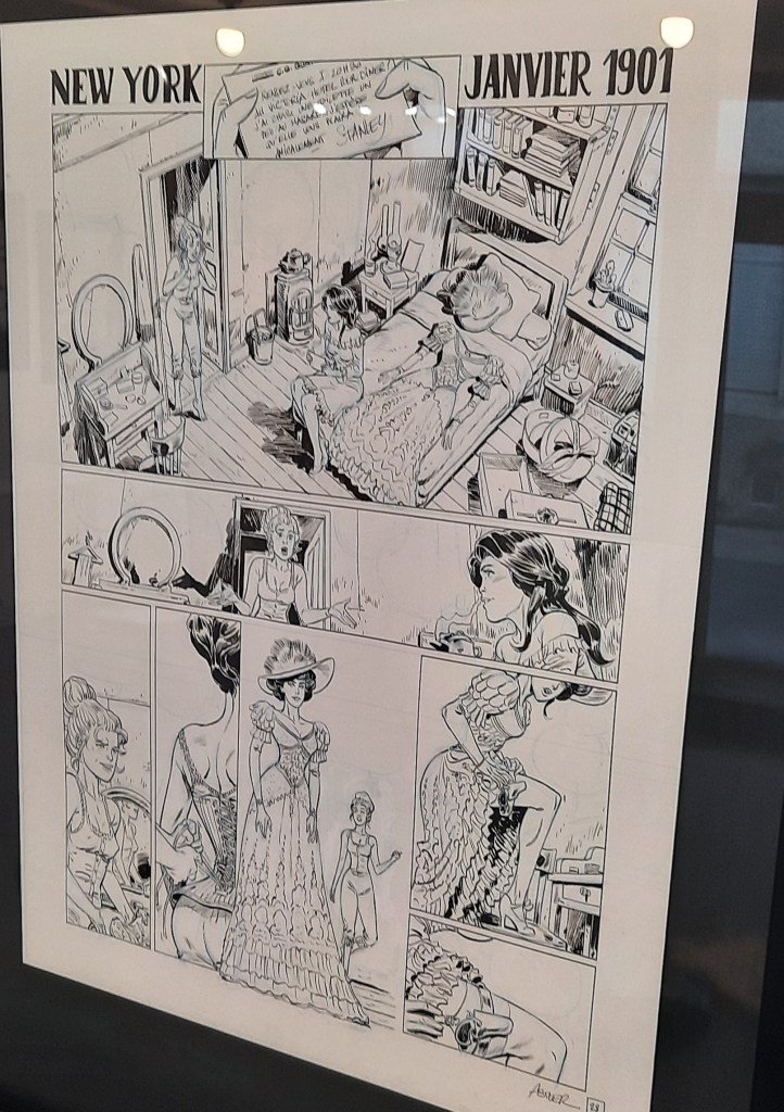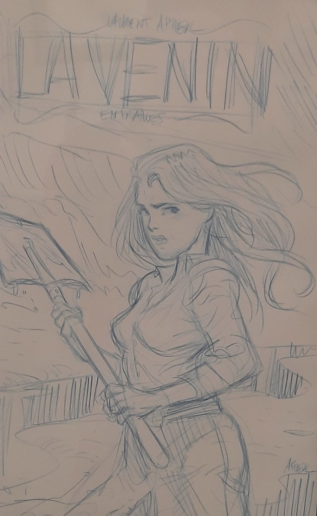 La manifestation met particulièrement en relief les deux derniers volets édités de la série. On est ravis de retrouver les couvertures des tomes 1, 3 et 4 mais également des esquisses magnifiques qui mettent en lumière un coup de crayon vif et sûr.