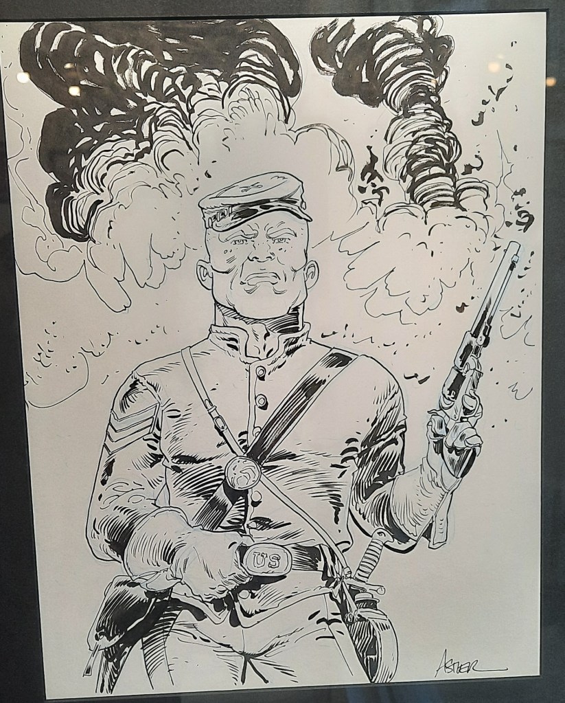 L’auteur nous accueille dans son fief castelroussin, et dans un espace spécialement conçu et adapté pour mettre en valeur ses sublimes réalisations. La superbe vitrine nous immerge d’emblée dans la tumultueuse histoire des Etats-Unis d’Amérique.