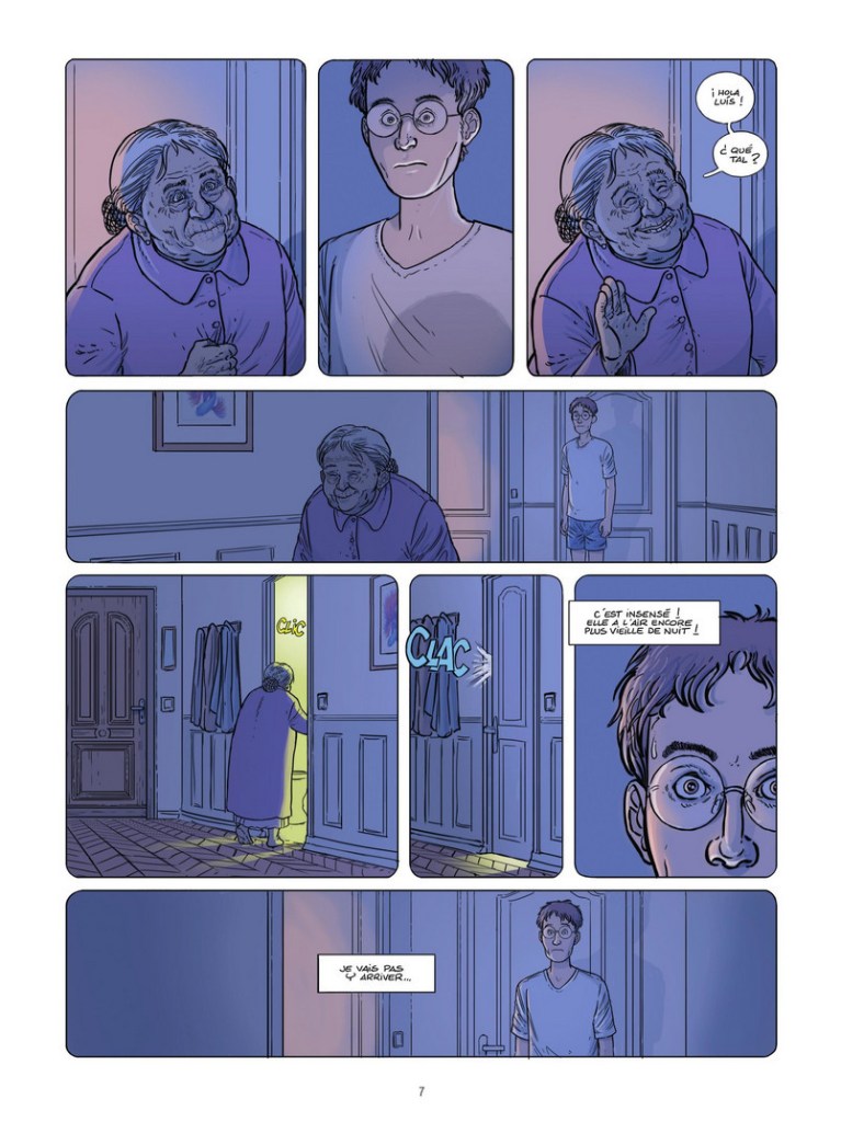 Maria bouscule Louis, demandant en voyant son frigo où l’on peut acheter de la vraie nourriture, faisant débarquer tout l’immeuble dans son appartement autour de la paella sacrée, invitant à accepter les épreuves (« c’est pas triste, c’est la vie! »)… La mamie ne parlant par français – c’est la petite-fille, Nieves, qui fait l’intermédiaire. Très jolie jeune femme, elle ne laisse pas Louis totalement indiférent… Sa vie bascule, réussira-t-il a sortir du carquant imposé par les codes de bonne famille ?