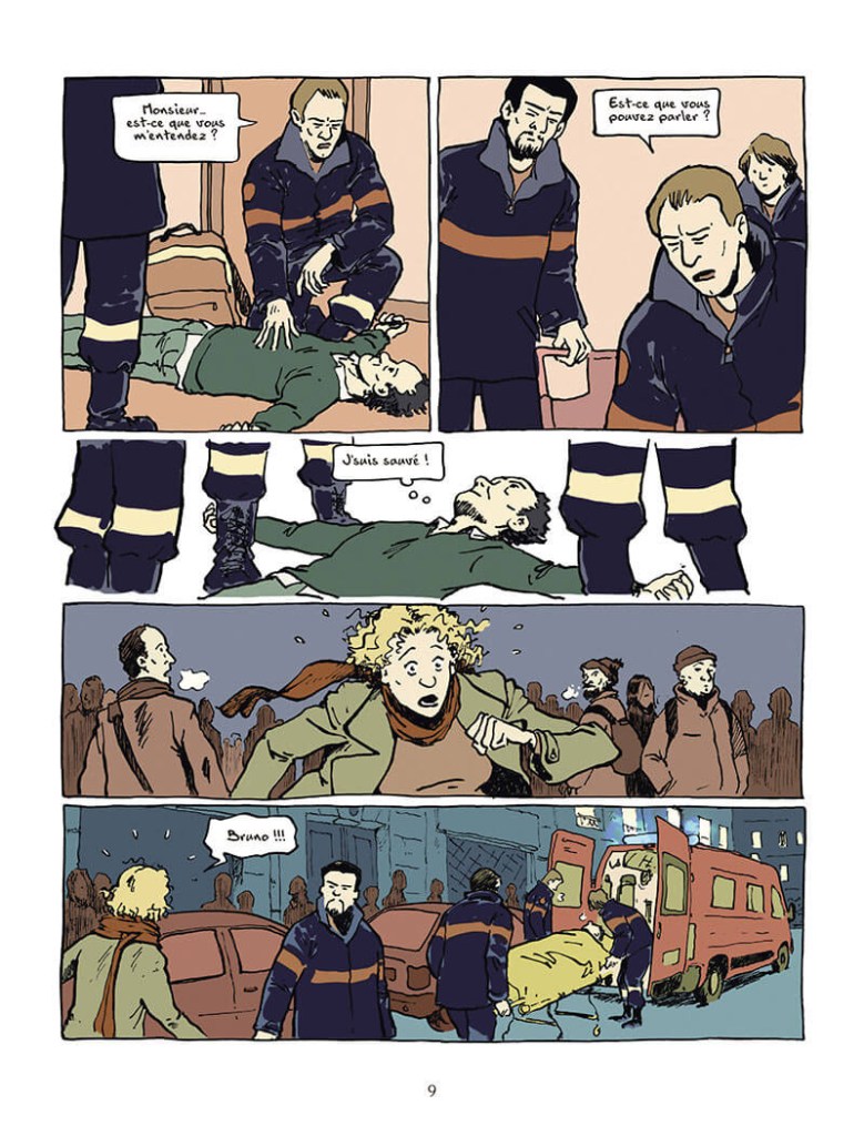 C’est une tranche de vie de Bruno Cadène que les deux auteurs qui avaient déjà collaboré sur The Ramones avec leur complice Éric Cartier nous content ici, un projet qui nécessita pas mal de temps. Un jour qu’il rentrait chez lui, le grand reporter à Radio France qui travaille à France Culture est victime d’un accident vasculaire cérébral. Alors qu’il en ressent les premiers effets, il contacte comme il le peut son épouse qui remue ciel et terre pour lui venir en aide.