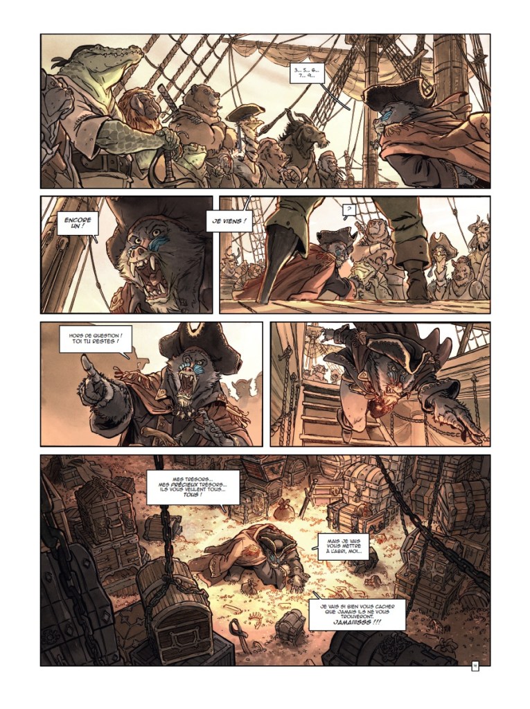 Le bédéiste a eu le génie de se concentrer sur l’essentiel, il n’a pas cédé à la tentation facile de sublimer ou rajouter des couches. Il a simplifié, élagué offrant une porte d’entrée pertinente sur un récit épique remarquable. Sa réalisation convient aussi bien à des enfants de 10 ans qui lisent parfaitement (le langage étant initialement soutenu) qu’à des adolescents, jeunes adultes et bédéphiles confirmés. Il comprend divers niveaux de lecture, les plus jeunes se plongeront dans une grande expédition maritime avec des pirates, une chasse au trésor passionnante. Les plus grands y découvriront la quête initiatique d’un garçon courageux qui va se confronter à la violence, la trahison et la mort et qui reviendra transformé à jamais.