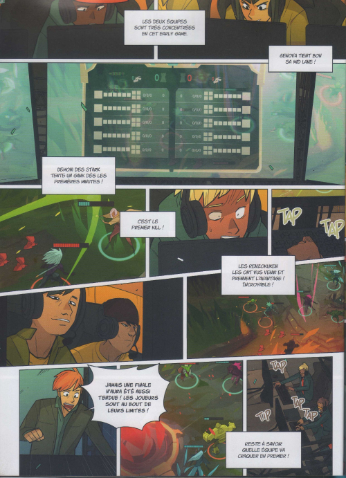 Si la compétition est au cœur du scénario, l’écriture du script a laissé de la place au développement de personnages aux caractères riches de leurs défauts et qualités. L’univers, le vocabulaire et les pensées des adolescents sont finement retranscrits. Plus qu’une simple histoire de jeux vidéo, les auteurs mettent en évidence au fil des pages des qualités universelles pour réussir un projet en équipe : anticiper, coopérer, communiquer, appliquer des stratégies, se respecter, s’entraider, mais aussi avoir une bonne hygiène de vie, connaître ses limites, accepter l’autre dans toute sa complexité. De quoi tordre le cou aux idées reçues sur les gamers, tout en passant un très bon moment. A découvrir !