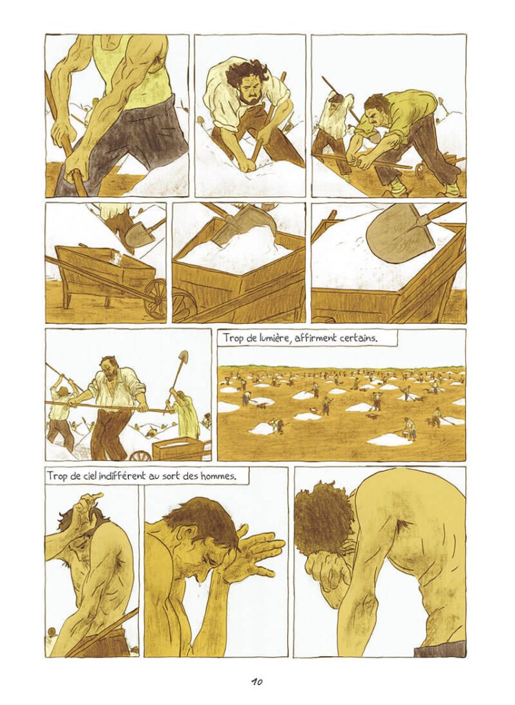 De sel et de sang c’est une bande dessinée qui revient avec pertinence sur un drame qui s’est déroulé en août 1893 dans les marais salants d’Aigues-Mortes, un fait terrible longtemps oublié que les auteurs ont eu la bonne idée de faire remonter à la surface pour nous rappeler ce qui n’est jamais inutile que le libéralisme débridé, la misère et le patriotisme peuvent parfois pousser l’homme au pire.