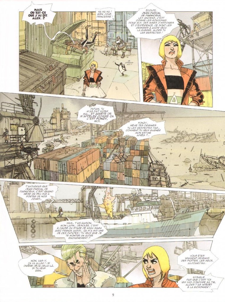 Les dessins de Jef sont magnifiques. On pourra y trouver l’influence de Moëbius (L’Incal) et celle de Katsuhiro Otomo (Akira). Les couleurs douces introduisent un intéressant contraste avec le cadre violent de l’histoire et le trait nerveux qui caractérise son style. Bref, c’est propre, c’est soigné, c’est détaillé, en particulier au niveau des véhicules représentés : 4L, DS, 205 et même… Solex (n’’oublions pas que l’action se déroule en France) ! On appréciera à cet égard l’annexe présentant plusieurs dessins de véhicules en noir et blanc et colorisés ainsi que des photos des modèles réduits ayant servi à la réalisation de certaines scènes.