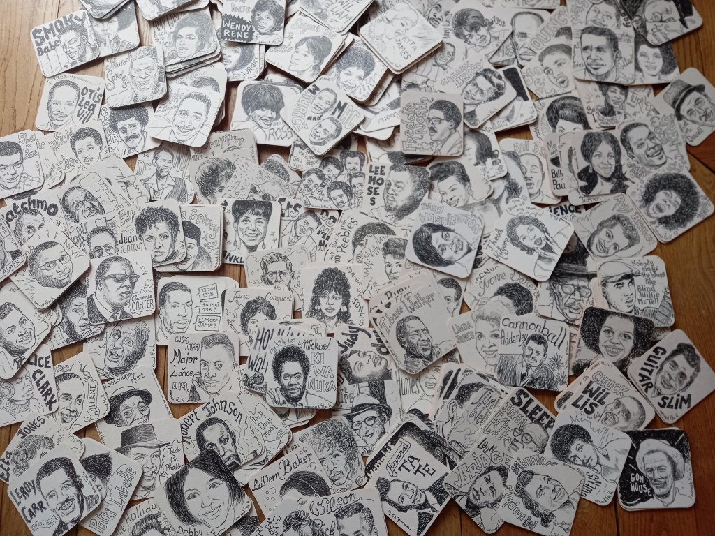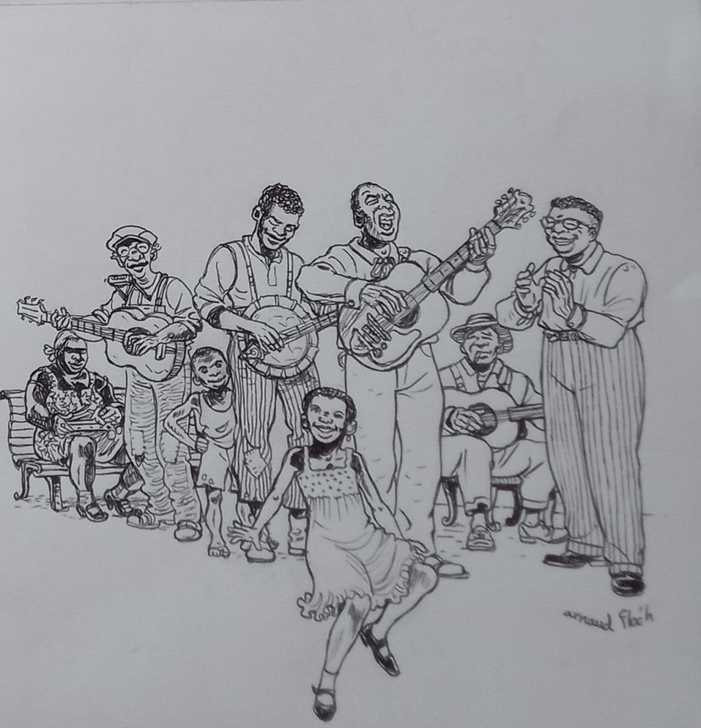 Lors de cet événement, qui fut ouvert au public pendant un mois, on pouvait retrouver les magnifiques portraits réalisés au fil des ans de musiciens et musiciennes noirs, des chanteurs, instrumentistes qui ont fait la Soul, le Blues, le Disco, de 1920 à 1980. Parce qu’ils ont marqué profondément leur pays et l’histoire de la musique, le bédéiste qui est également un mélomane averti souhaitait les immortaliser de manière originale et surprenante. Il parvient ici à nous bousculer avec une production assez étonnante et séduisante.