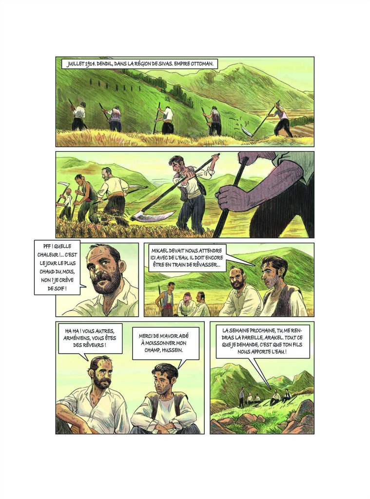 Les deux auteurs ont une fois de plus uni leurs compétences pour composer un récit qui nous prend rapidement aux tripes et nous embarque à Dendil, une ville où cohabitaient pacifiquement Arméniens et Turcs.