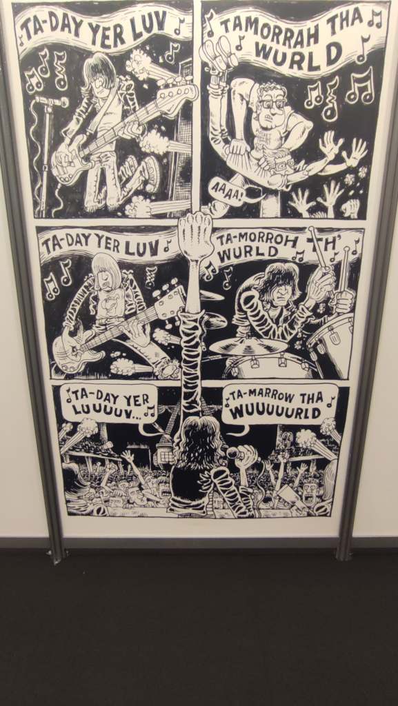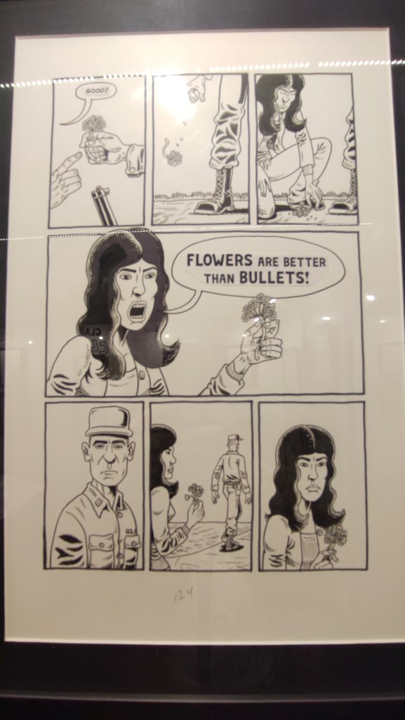 L’artiste excelle pour contrôler la narration, établir des portraits psychologiques précis tout en conservant un style underground et rock’n roll. L’amateur de Jack Kirby sera très présent sur le festival et la rencontre mérite le détour en plus de l’observation des planches originales mises en relief dans un superbe décor.