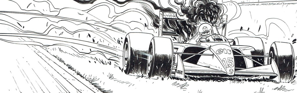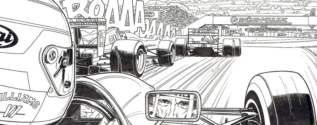 Avec cet événement visible jusqu’au 12 novembre à Bruxelles, l’auteur toujours très intéressé par la formule 1 et les 24 heures du Mans partage son travail, nous éblouit et prouve que les professionnels qui utilisent une palette graphique sont également capables de nous séduire lorsqu’ils travaillent en traditionnel. Ce n’est qu’une histoire de talent et cet artiste aussi sympathique que brillant en a à revendre. Il ne manque à ses images que le son et l’odeur, le rendu est époustouflant et la sensation de vitesse parfaitement restituée. Les adeptes de sensations fortes vont être à la fête.