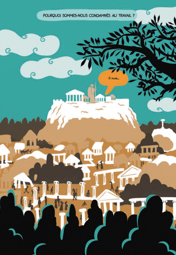 C’est ici le troisième tome de cette collection « Métro, boulot, cogito » qui m’amène. Avec Jean-Philippe THIVET et Jérôme VERMER au scénario, c’est la notion de travail qui est très sérieusement traitée et à travers elle une interrogation plus large sur notre épanouissement personnel et la fondation d’une société plus harmonieuse. En quatrième de couverture la question est clairement posée : le travail nous rend-il heureux ou malheureux ? Pour y répondre, enfin pour faire en sorte que vous soyez en mesure à l’issue de votre lecture d’être capable d’y réfléchir vous-même 😉, ce troisième opus est scindé en chapitres développant les théories d’un philosophe et rangés par ordre chronologique. Au début de chaque chapitre, sont posés une biographie succincte et le contexte de la réflexion sur la notion de travail du philosophe choisi. Vous trouverez les théories de dix penseurs, de Socrate à Bertrand Russell en passant par René Descartes, Friedrich Hegel, Karl Marx ou encore Martin Heidegger. En fin d’ouvrage, une bibliographie détaillée peut permettre de pousser plus avant la réflexion.