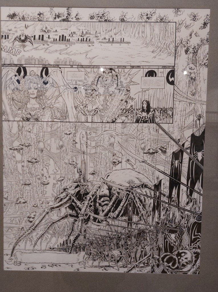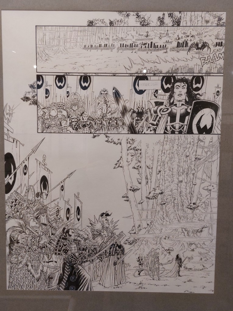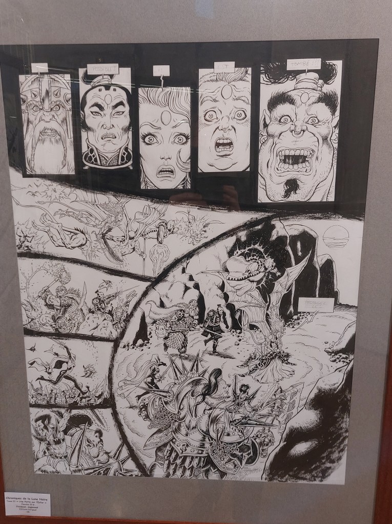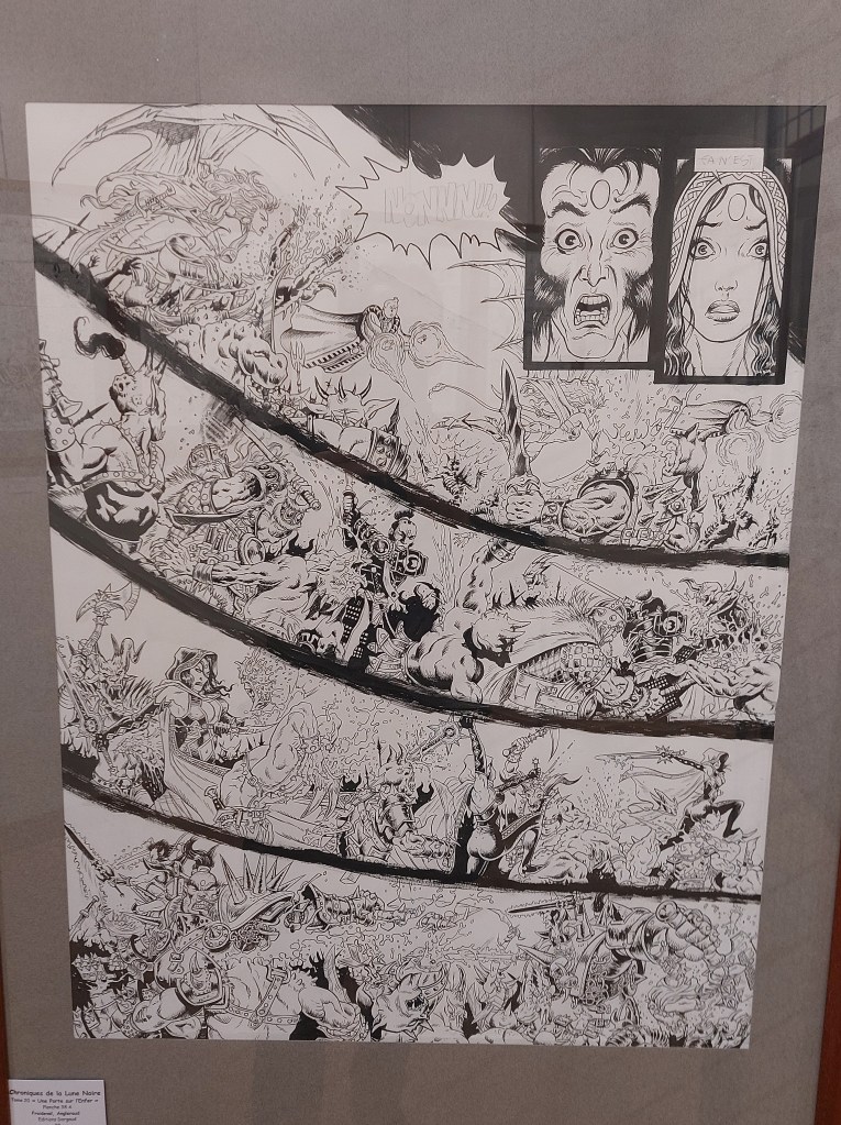 Mais c’est bien évidemment sa contribution aux Chroniques de La Lune Noire, une œuvre dark fantasy éditée par Dargaud qui se taille ici la part du lion. On peut observer les pages qu’il a composées pour les tomes 15 à 21 et c’est assez bluffant.
