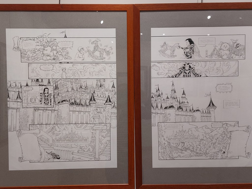 L’exposition offre l’opportunité d’observer ses recherches, crayonnés, esquisses mais aussi des cadrages en mouvement permanent, un dessin minutieux, des doubles pages magiques et un encrage époustouflant.