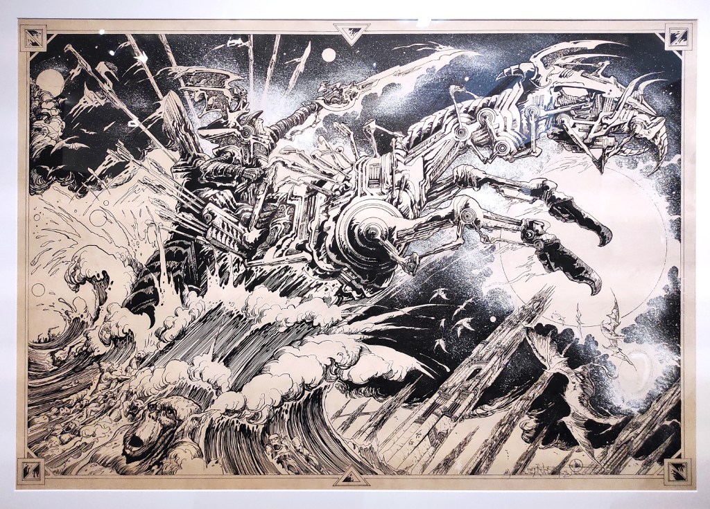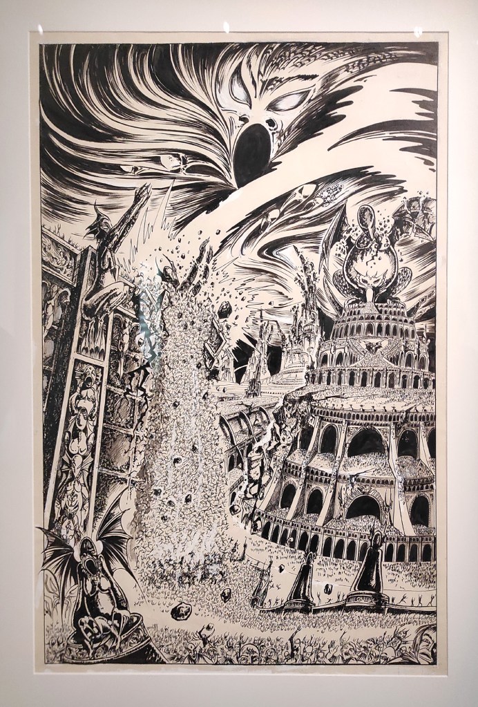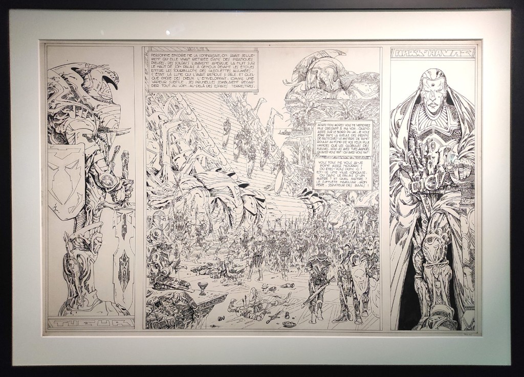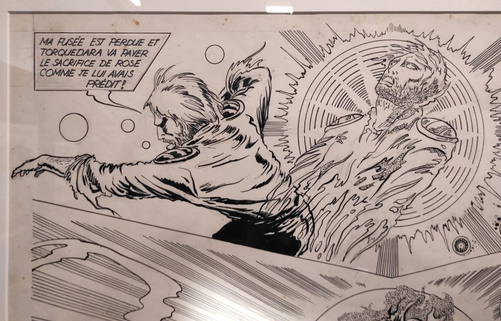 Intitulée « Les 6 voyages de Philippe Druillet » elle constitue un bel hommage au lauréat du grand prix en 1988 et un évènement immanquable. Elle permet d’apprécier pour encore quelques jours des planches en très grand format mais aussi de se focaliser calmement sur les nombreux détails tout en prenant conscience de l’aura d’un précurseur auquel la BD et le cinéma doivent tant.