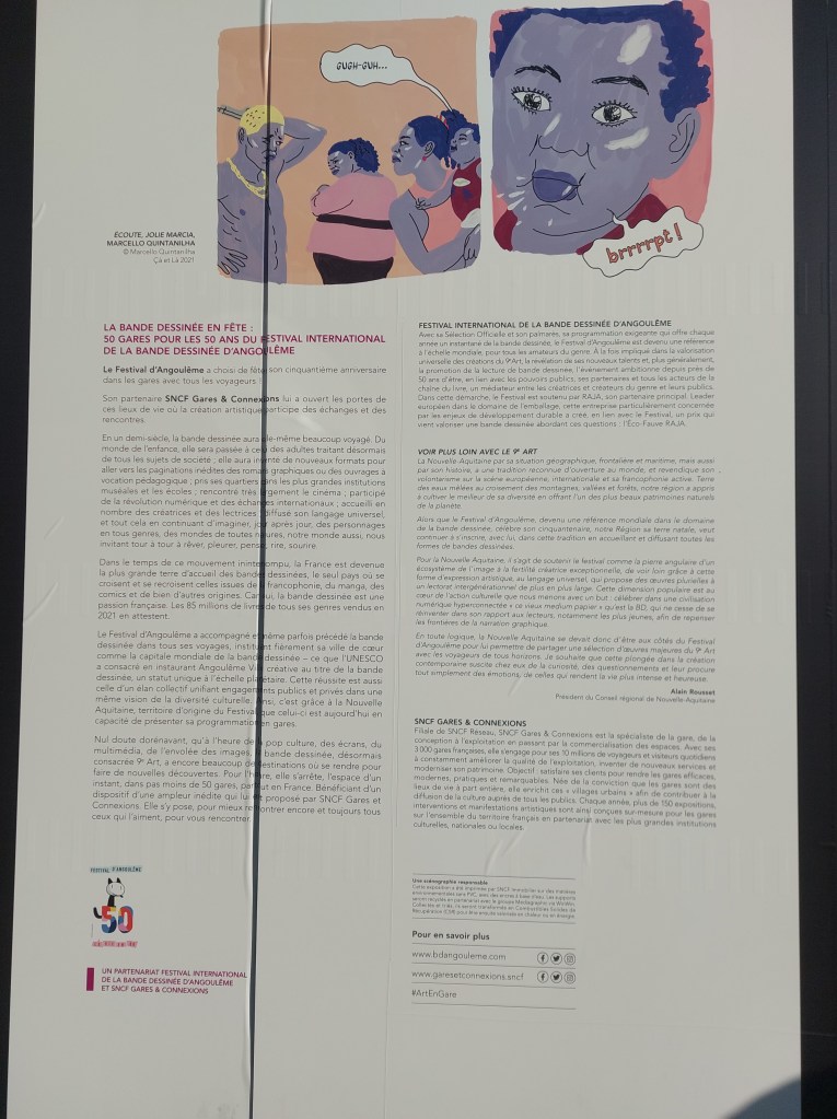 Pour sa 50e édition, le Festival International de la Bande Dessinée d’Angoulême et son partenaire SNCF Gares & Connexions poursuivent leur audacieux projet visant à susciter des rencontres avec le neuvième art en dehors des lieux réservés.