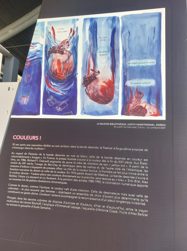 La Gare d’Orléans a été retenue pour mettre en avant le traitement de la couleur en bd et le travail des coloristes, artisans délicats qui opèrent en dernier après l’encrage. Les délais étant très serrés, l’outil numérique s’est peu à peu généralisé. Ces professionnels de l’image qui sont également majoritairement dessinateurs eux aussi ont en charge la réalisation des atmosphères, des ambiances. Ils contribuent à la narration, apportent du rythme, du relief et accentuent la lisibilité.