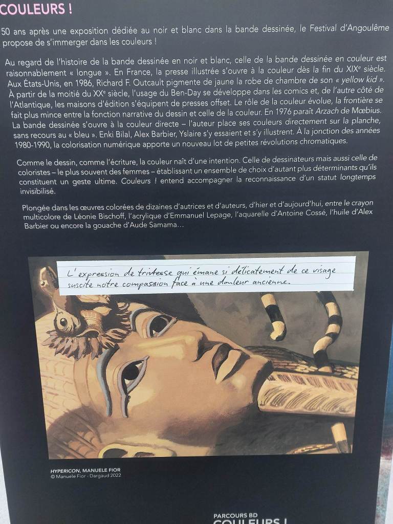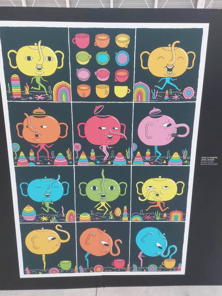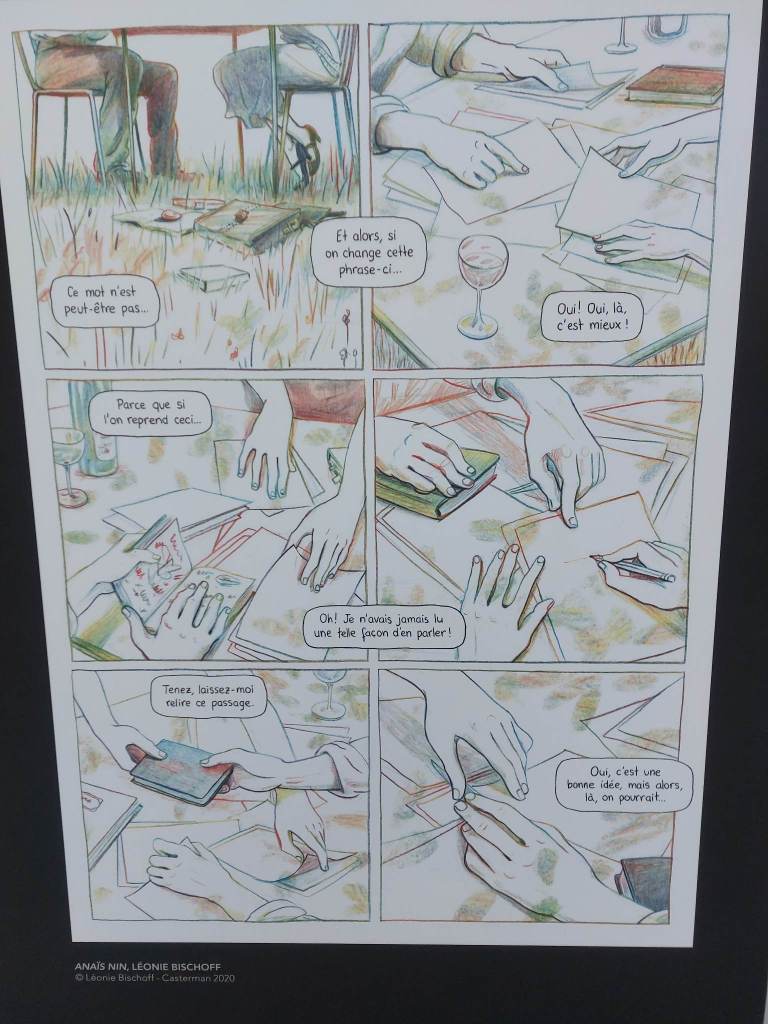 Cette exposition a choisi de mettre en valeur le travail de plusieurs artistes. On peut admirer les gouaches fantastiques de Manuele Fior dans Hypericon chez Dargaud, l’esthétisme incandescent créé par Elene Usdin dans René.e aux bois dormants chez Éditions Sarbacane, le crayon multicolore de Léonie Bischoff dans Anais Nin sur la mer des mensonges chez Casterman BD ou encore la maîtrise de l’acrylique d’ Emmanuel Lepage pour l’album Cache-cache Bâton édité par Futuropolis.