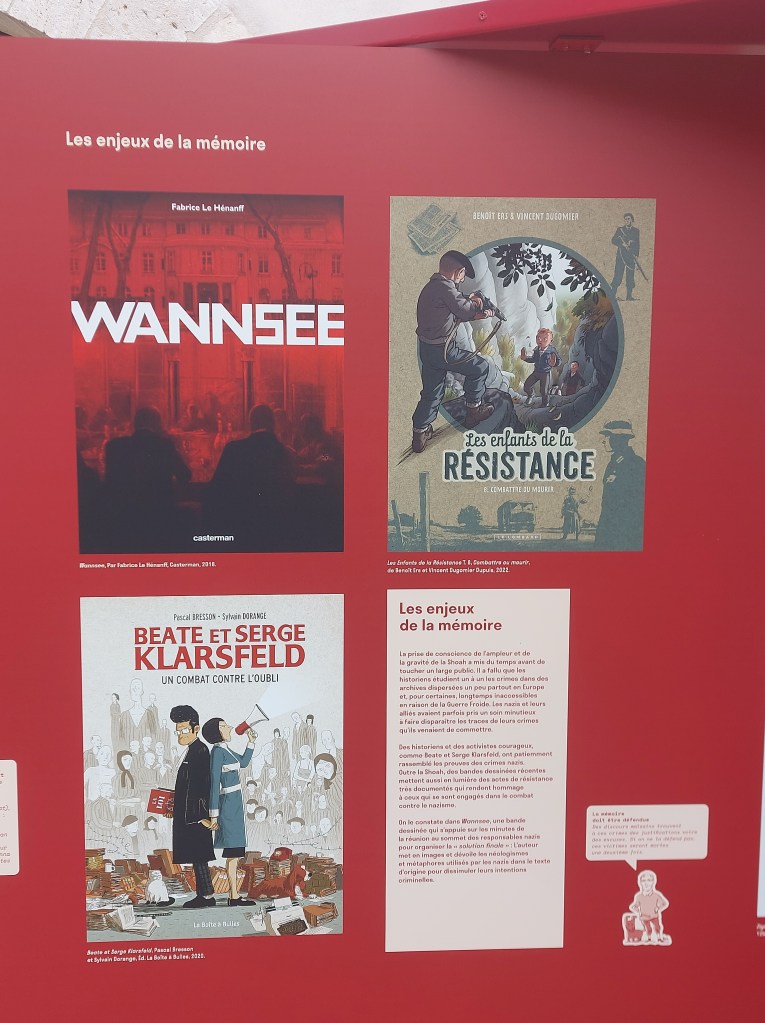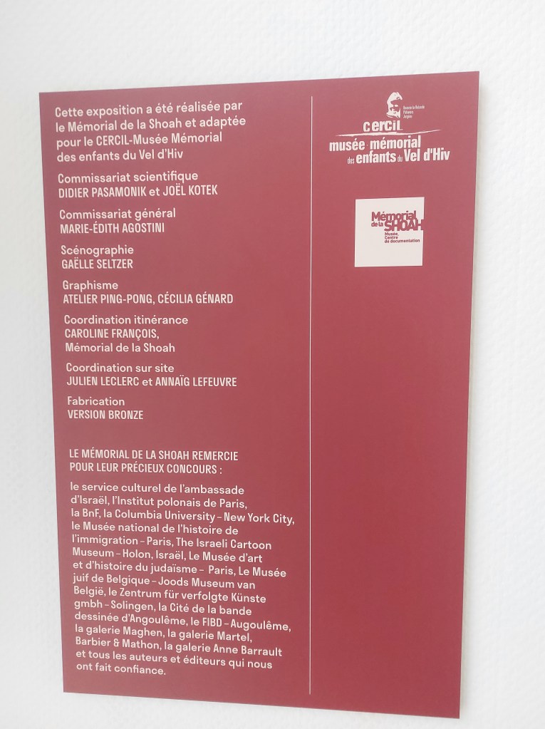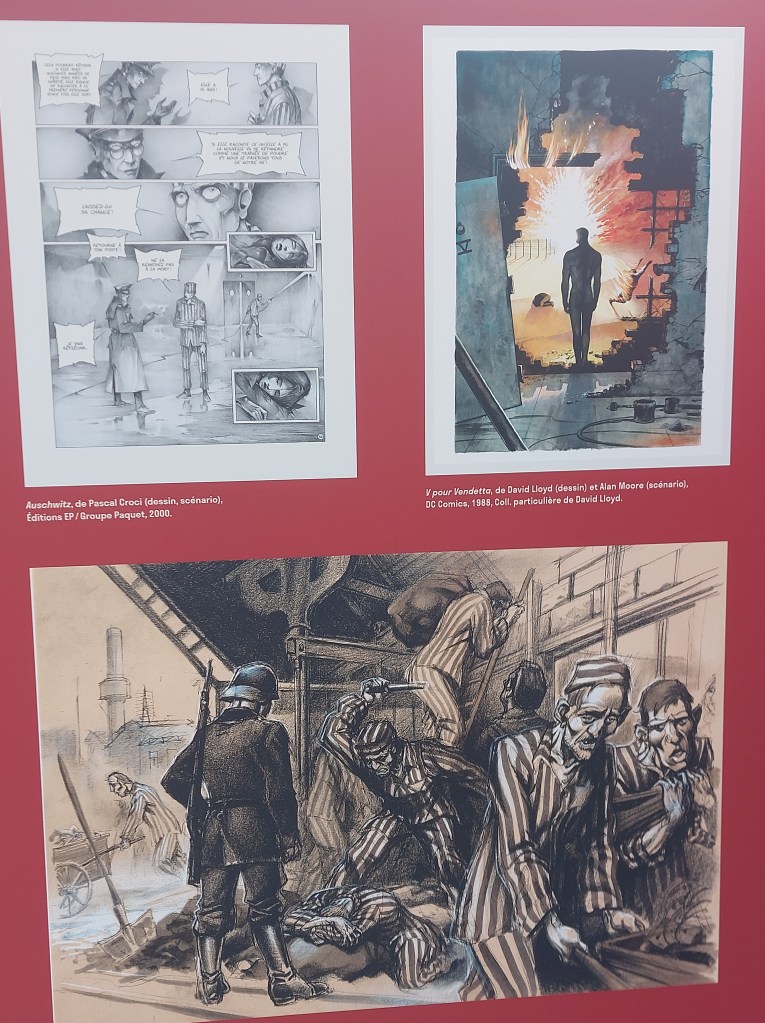 L’affiche d’ Enki Bilal est irrésistible. Les créateurs de ce splendide exposé ont eu la pertinence de souligner le travail et les œuvres de contributeurs contemporains investis, expérimentés et reconnus. La présence des albums et romans graphiques de Will Eisner, Pascal Bresson, Jean-David Morvan, Richard Malka, Pascal Croci, ou encore Gaétan Nocq sont des évidences. On apprécie également que le titre Après la rafle de Joseph Weismann, Arnaud Delalande et Laurent Bidot édité par Les Arènes BD soit ainsi mis en perspective car c’est un témoignage important, glaçant à lire absolument.
