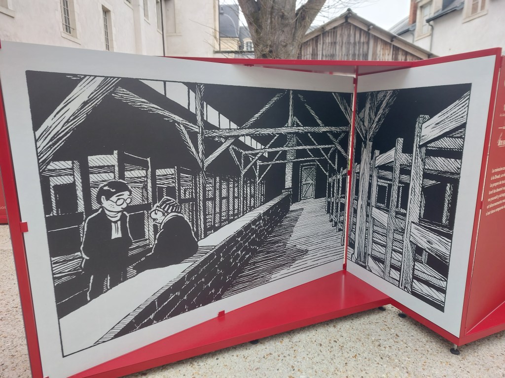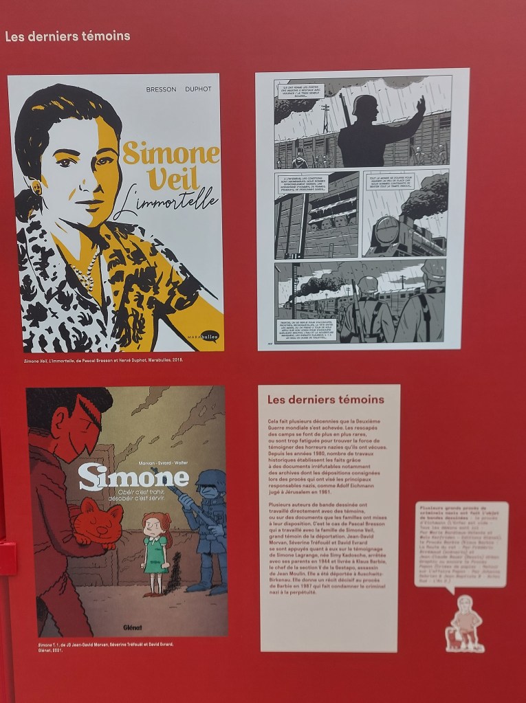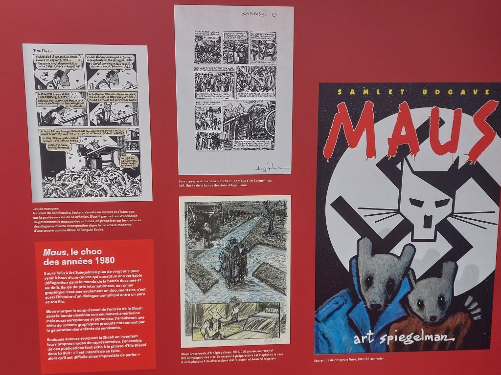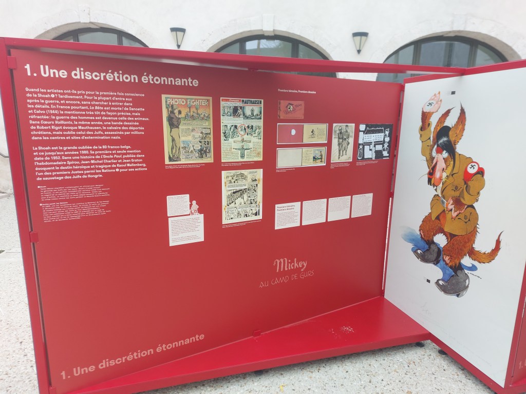 Visible à Orléans jusqu’au 23 novembre 2023, elle a pour thème la Shoah et la Bande dessinée. Elle souligne les œuvres phares et leur impact La bête est morte chef-d’œuvre précurseur de Victor Dancette, Jacques Zimmerman et Edmond-François Calvo pour Gallimard, le choc Maus de l’immense Art Spiegelman chez Flammarion mais aussi Spirou L’espoir malgré tout, la formidable saga d’Emile Bravo publiée par Éditions Dupuis.