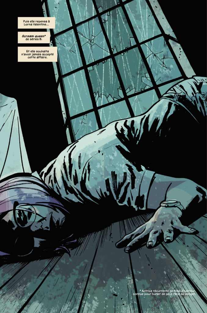 Ed Brubaker a eu pour oncle John Paxton. Ce scénariste a rédigé les scripts d’Adieu Ma Belle, Feux Croisés, L’Equipée Sauvage, Le Dernier Rivage pour le cinéma. Ce n’est pas étonnant que le neveu excelle dans le domaine et lorgne vers le thriller fiévreux. Il est fasciné par le symbole de l’industrie du divertissement qu’est Hollywood, ce lieu étrange au boulevard étoilé. Fondu Au Noir et Fatale en sont les parfaits exemples. C’est un conteur instinctif qui se taille une solide réputation dans la rédaction de polars aux relents de puzzles oppressants, on constate sa passion d’une écriture à la fois organique et logique. Il se laisse guider par les personnages pour décrire un univers noir irrécupérable, les références littéraires jonchent un environnement insulaire limite paranoïaque auquel se mêlent suspens et ingrédients terrifiants. Etant un fan absolu de Ross Macdonald, Brubaker incorpore des éléments psychologiques à ses récits. L’écrivain s’intéresse à de nombreux sujets et diverses périodes, lit de multiples histoires vraies et faits existants tels que l’American Horror Story du Manoir de Rosenheim ou Elvira la maîtresse des ténèbres interprétée par Cassandra Patterson. Qu’il assimile ensuite à ses propres fictions afin de les rendre davantage consistantes. L’auteur dynamite et relance sa série Reckless dans Ce Fantôme En Toi en proposant les rôles principaux de l’arc à un casting largement féminin. Ethan y est quasiment absent, l’ombre du redresseur de tort plane pourtant sur la totalité de l’album édité comme les précédents par Delcourt. L’héroïne navigue entre présentatrice has-been, flics brutaux et sans-abris immoraux. Ce changement de protagoniste n’entache en rien l’atmosphère du titre, l’intrigue est aussi ensorcelante que violente. Comme à l’accoutumée, la narration est millimétrée, imparable et addictive. Son univers se distingue par un climat glauque, des relations dégueulasses saupoudrées de toxicos et escrocs en perdition. Les dialogues sont ciselés et sonnent justes, la conclusion arrive calmement non sans une avalanche de violence.