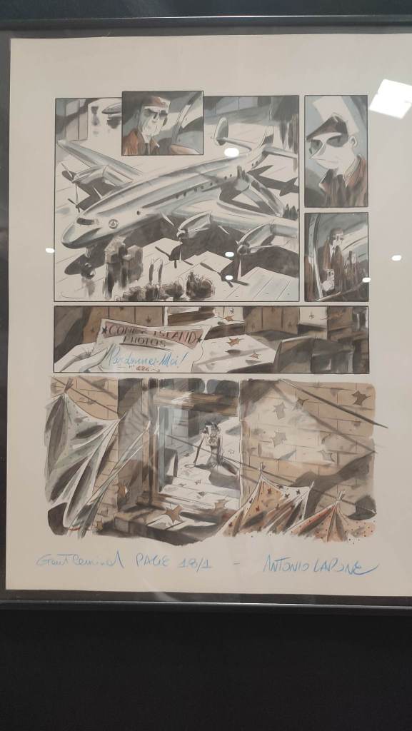 Dans le hall 5, on pouvait admirer des esquisses préparatoires précises et rigoureuses, un dessin ligne clair élégant, hyper efficace et une mise en couleurs bluffante.