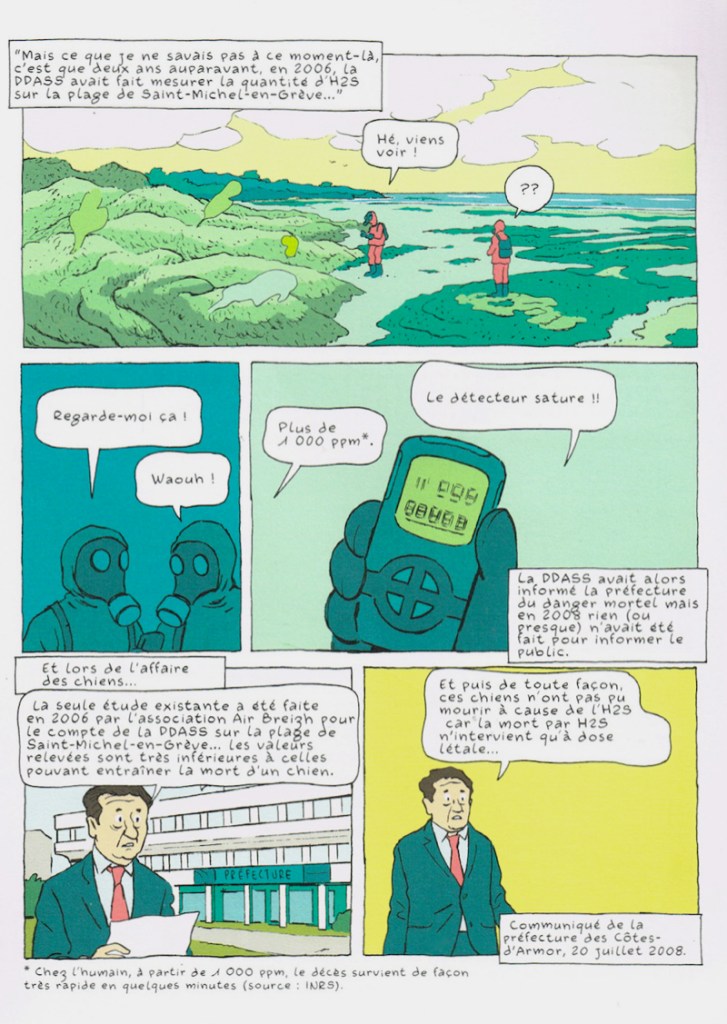 Dans l’ouvrage, on suit notamment le parcours de Pierre Philippe, médecin urgentiste à Lannion, qui a été l’un des premiers à soupçonner la toxicité mortelle des algues vertes. Son histoire incarne la difficulté d’être écouté et pris au sérieux face à un problème environnemental majeur.