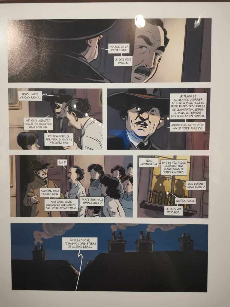 Il faut voir dans leur format original ces planches, où l’étau se resserre (on se souvient de toute la métaphore de Maus sur les juifs prisonniers comme dans une souricière) ; où les prisonniers deviennent des ombres qui arrêtent de réfléchir, et dont le moteur est la peur ; où la couleur laisse place au noir et blanc quand le mensonge sur les chambres à gaz est abominable – « après la douche, j’ai du travail pour les menuisiers ». La photographie de Ginette avec sa famille imprime la rétine – le père et le frère ayant