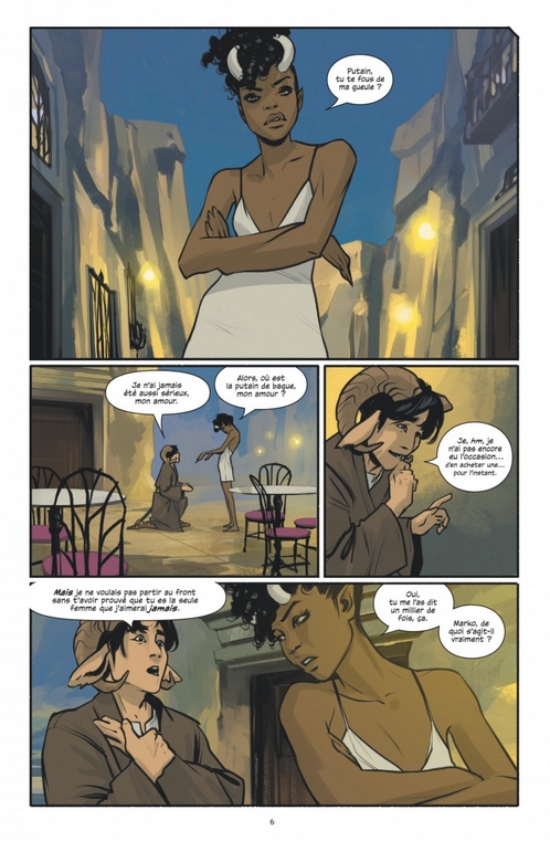 Alana, Hazel et Ecuyer ont perdu leur arbre-maison-fusée dans un tragique incendie. Manque de bol, la planète sur laquelle ils sont piégés est le théâtre d’un nouveau conflit entre les pros Continent et Couronne. La situation n’évolue guère entre les têtes de con…cornes et les porteurs d’ailettes, fuir s’avère clairement difficile.