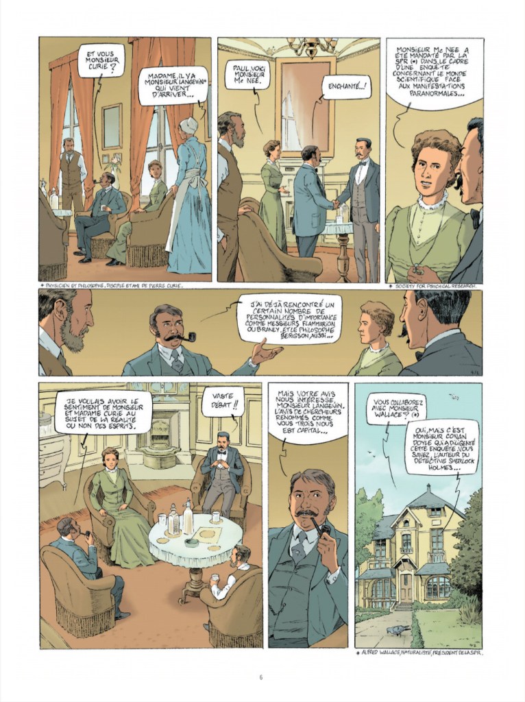 Ce n’est pas seulement la première bd mais le premier livre sur un sujet dont on perçoit rapidement qu’il dérange. L’auteur revient sur un blackout total organisé pas l’intelligentsia qui ne souhaite visiblement pas que l’on évoque comment une scientifique reconnue et honorée par le prix Nobel s’est, avec son mari, dans un premier temps, puis seule intéressée de très près au spiritisme.
