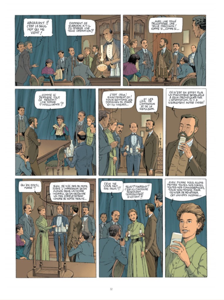 Dans ce récit, il revient sur la relation passionnée entre Pierre et Marie mais également sur leur avidité de comprendre des faits irrationnels qui les dépassent. Il rapporte fidèlement, avec moult détails les séances spirites consignées par d’éminents scientifiques. On réalise à quel point, ils se sont investis et on se questionne sur cette volonté d’effacer leurs recherches.