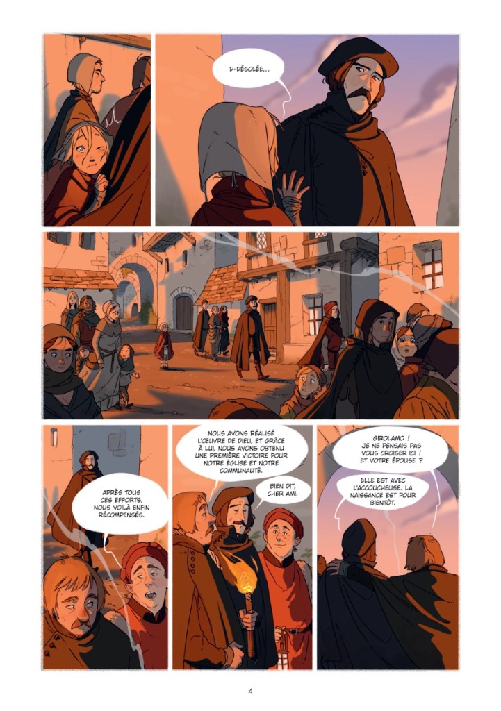 À une époque lointaine, où des femmes finissaient sur le bûcher pour de sombres appartenances, quelques passants s’exaltaient à la vue des foyers flamboyants. D’autres n’avaient pas le temps de s’y attarder, ces badauds préféraient s’accrocher à la vie qu’à ce triste spectacle. Girolamo, fait partie de ces derniers. Aujourd’hui, son épouse enfante une nouvelle fois et si Dieu le veut, elle mettra au monde un second fils. Il se déroule donc dans ce village, deux événements simultanés, certes pas de la même importance. Beldie et Viviana vont mourir dans les flammes et un nouvel être va naître. Cela se passe comme ça depuis la nuit des temps, certains humains meurent et d’autres prennent leur place…