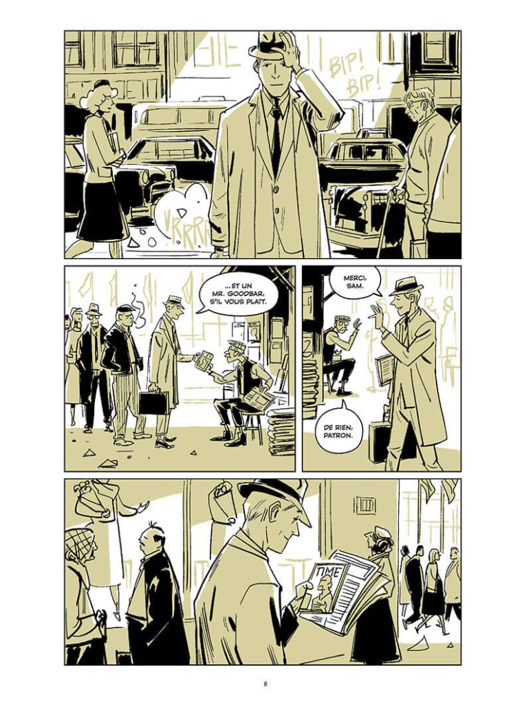 En optant pour une colorisation simple déclinant trois couleurs, le blanc, le beige et le noir, le dessinateur nous offre à la fois clarté, simplicité, et saisissants contrastes. Les regards zoomés impriment nos rétines et en disent long sur l’étendue des émotions traversées par les personnages. Le trait est spontané, structuré, réaliste. La reconstitution historique, fidèle, à chaque étape. Le dénuement de la famille se lit dans les rares accessoires présents : boîtes de sardines, riz et veste rapiécée. Les gitans offrent une douce parenthèse, avant la traversée de champs de coton et la ville aux espaces nettement séparés, rabaissant systématiquement les non-blancs. L’ambiance maritime est réussie, gros bras, jeux de carte, grosses caisses en bois… Puis le nombre de cases se multiplie, pour mieux partager la vitesse des combats de boxe. Pas de répit pour les combattants ! Le Paris de 1913 semble romancé tant il apporte de la sérénité, parterre de fleur, parcs harmonieux, agréables terrasses et serveuse souriante. Les pages suivantes n’en sont que plus terrifiantes. Dans une explosion d’onomatopées, sol et ligne d’horizon sont déstructurés, hommes et chevaux sont happés, et certaines situations ne font tout simplement pas sens tellement l’horreur est grande. Par chance, notre héros s’en sort – avec les honneurs, et c’est par un de ces délicieux dialogues qui animent la BD – autour d’un pari – que M. Bullard, le moineau, rejoindra vaillamment le ciel.