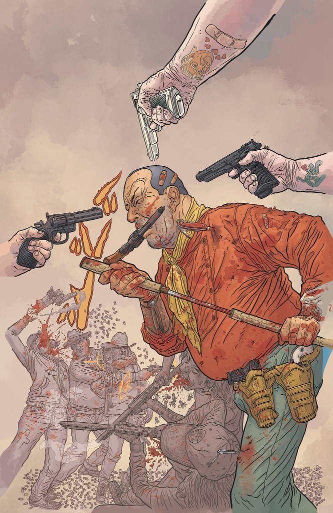 On pensait en avoir fini avec lui, ah ben non. Le samouraï-pistolero de ce bon Geof Darrow revient en fanfare dans The Shaolin Cowboy T4 – Pour une poignée de beaufs chez Futuropolis. Que nous réserve ce nouvel opus ? Le plus européen des artistes américains aidé par le trublion Dave Stewart nous concocte un album totalement déraisonnable servi par une illustration et une colorisation assassines sur fond de western spaghetti sous acide. L’homme sans nom asiatique continue de nous mettre la trique électrique.