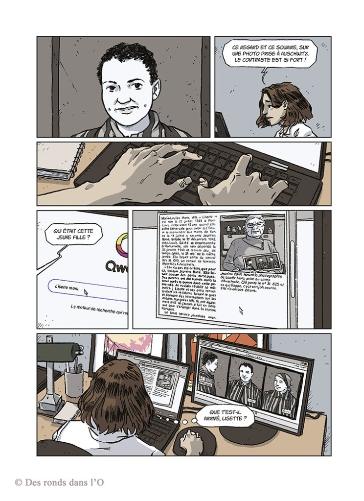 Chaque vie sacrifiée mérite d’être connue. Pour que chaque personne ne soit pas juste le numéro auquel les nazis avaient voulu la réduire. Comme nous l’a montrée la panthéonisation récente de militants étrangers, la résistance a pris de multiples formes durant la Seconde Guerre Mondiale : communistes, gaullistes, catholiques, juifs, instituteurs… Adultes aguerris mais aussi très jeunes volontaires. L’histoire de Lisette Moru, résistante bretonne de 17 ans », narrée dans la bande dessinée « le sourire d’Auschwitz aux éditions Des ronds dans l’O, nous le dit avec force. Stéphanie Trouillard, journaliste à France 24, souhaitait parler des femmes dans la résistance. Son grand-oncle ayant été résistant breton, tué en 1944, elle s’est naturellement penchée sur l’histoire du Morbihan. Lisette, c’est la petite histoire dans la grande, et une énigme : pourquoi sourit-elle une fois déportée à Auschwitz, camp de concentration et d’extermination ? Après avoir réalisé un web documentaire, la BD permet de poursuivre la transmission de son vécu tragique, à travers une enquête précise et captivante, des historiens aux lieux de mémoire en passant par le centre d’animation historique et les archives départementales. Lisette revit sous les traits sensibles et justes de Renan Coquin, dessinateur breton dont c’est le premier album.