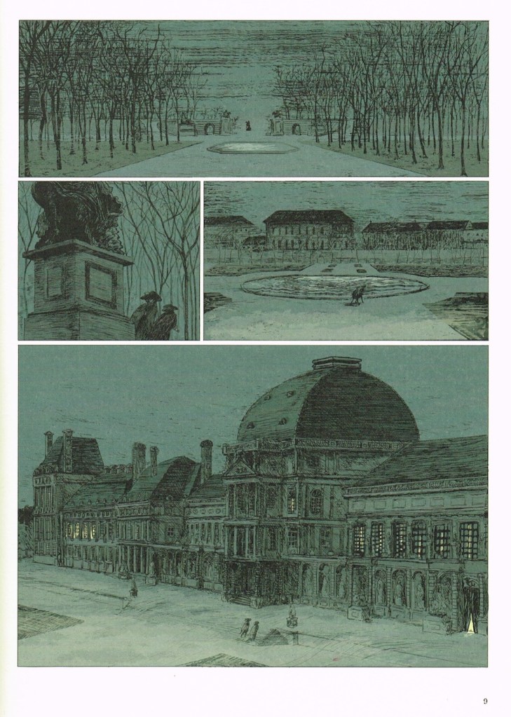 Les pages sont réalisées à l’encre de chine. Un énorme travail a été fait sur Paris. Nous pouvons admirer sur des pleines pages, des scènes panoramiques, des vues aériennes de la capitale française. Ces gravures impressionnent par la multitude de détails, par la représentation de la foule.