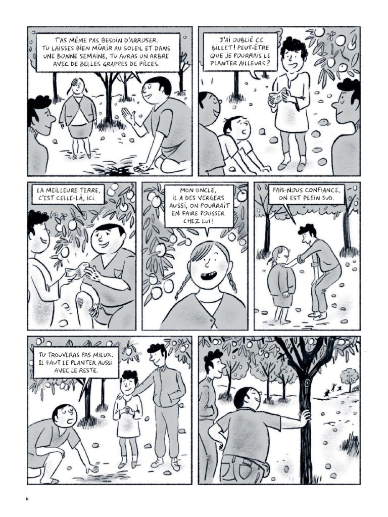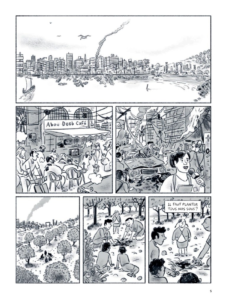 Saut dans le temps, Abel est devenu développeur d’expériences en réalité virtuelle, et Georges, qui est resté au pays et s’implique à la municipalité, lui rend visite en France. A la joie des retrouvailles succèdent des émotions plus compliquées. Abel semble avoir fui sa famille, son pays. Mais pourquoi ? Petit à petit, le lecteur tire les ficelles de cette histoire à tiroirs, et commence à s’interroger. Il découvre également que Georges assure une lourde responsabilité, s’occuper du père d’Abel, alors que sa santé décline. La fille d’Abel va alors pousser son père à l’accompagner au Liban. Elle a une passion commune pour le dessin avec son grand-père et est ravie de découvrir le territoire de ses racines et sa douceur de vivre. Mais la situation se dégrade, l’insécurité augmente soudainement. Les protagonistes se retrouvent coincés dans l’appartement en attendant d’être escortés à l’aéroport. Les émotions et souvenirs sont alors catalysés…