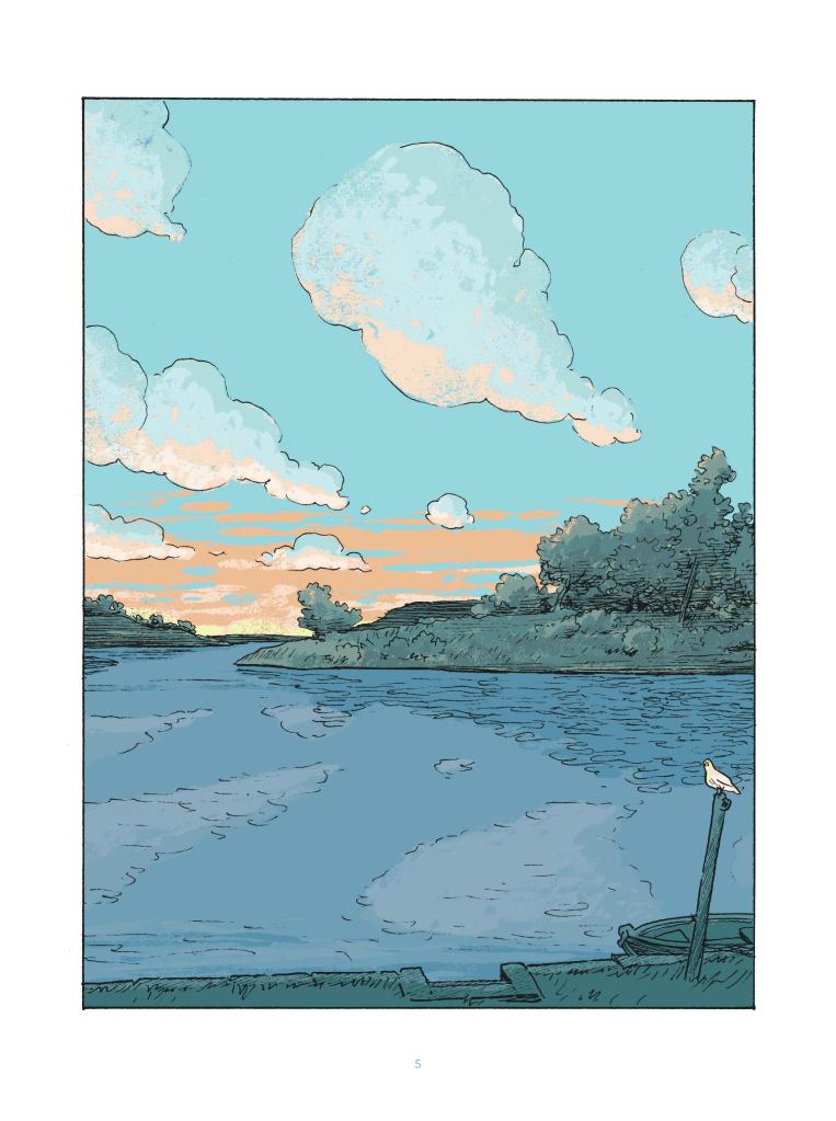 Arrêtons-nous un instant à Dave-Rivage. Ce village pourrait être le vôtre pour plein de raisons. Il est traversé par une rivière et les chemins de fer. On y trouve un joli parc orné d’une mare. Il y a une église et un collège. Ce tableau bucolique nous pousse à croire qu’ « ici, Il fait bon vivre ». Zabus le conteur et Nicoby l’artiste peintre, ont concocté, aux éditions Dargaud, l’album Nos rives partagées où nous pouvons suivre les tribulations de six riverains. Êtes-vous prêts à les rencontrer ? Allez, c’est parti !