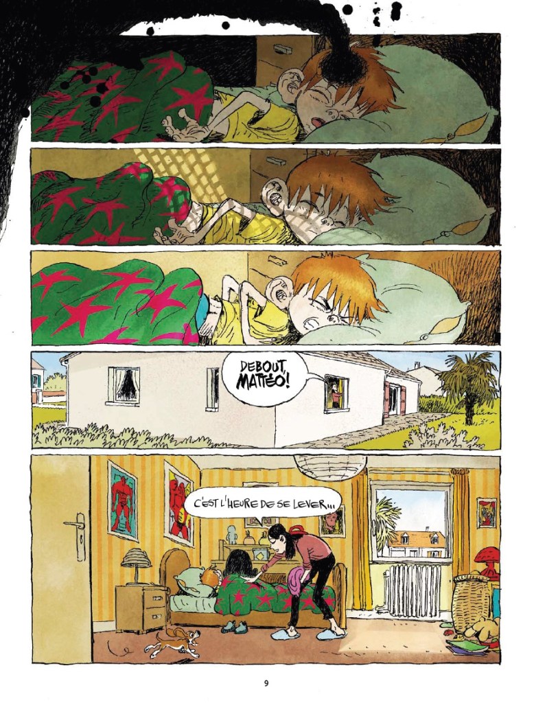 Mattéo a le sommeil habité de cauchemars. Toujours les mêmes. Ils reviennent inlassablement. Une figure obscure lui rend visite toutes les nuits dans sa chambre et l’effraie. Le matin, encore tout ensommeillé, il essaie de cacher sa mauvaise nuitée. Ses parents ne sont pas dupes, mais ils n’ont pas vraiment envie d’en parler.