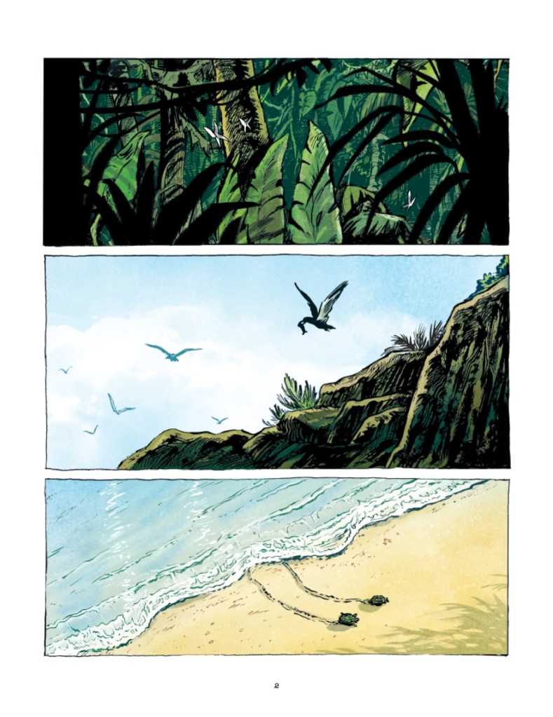 Au fil des pages, tout dérape, on passe alors de l’innocence à la brutalité , du respect des règles, de la civilisation à l’anarchie. La bédéiste met son savoir-faire au service de la narration pour accroître la portée des mots grâce à des ambiances paradisiaques dans un premier temps puis étouffantes et malaisantes.
