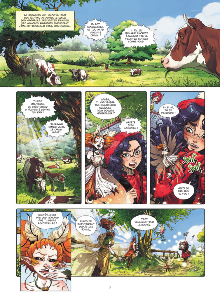 Les fées ont de croustillants dialogues, enrichis de leur propre vocabulaire : mangeailler, lumignon, piapiater… Mais quand il s’agit de disputances avec la reine Marigold, la ruchée se disperse et se trouve fragilisée. Leur bergère, Lucie, va trouver conseil et enseignements auprès du cartographe, sur sa péniche. L’homme a acquis de solides connaissances sur le petit peuple… Mais il les distille au prix fort : il réclame que Lucie trouve le siège de la société secrète Abraxas, qui fait commerce de nos douces protégées… Or, Arlésia, la mère de Lucie, s’avère être une chasseuse de fées. Elle manigance pour retrouver le trésor des reines, aux côté d’Achille, cousin de Lucie. Lucie parviendra-t-elle à l’espionner et lui arracher des secrets ? Les fées seront-elles victimes, ou devront-elles faire usage de leur venin ?