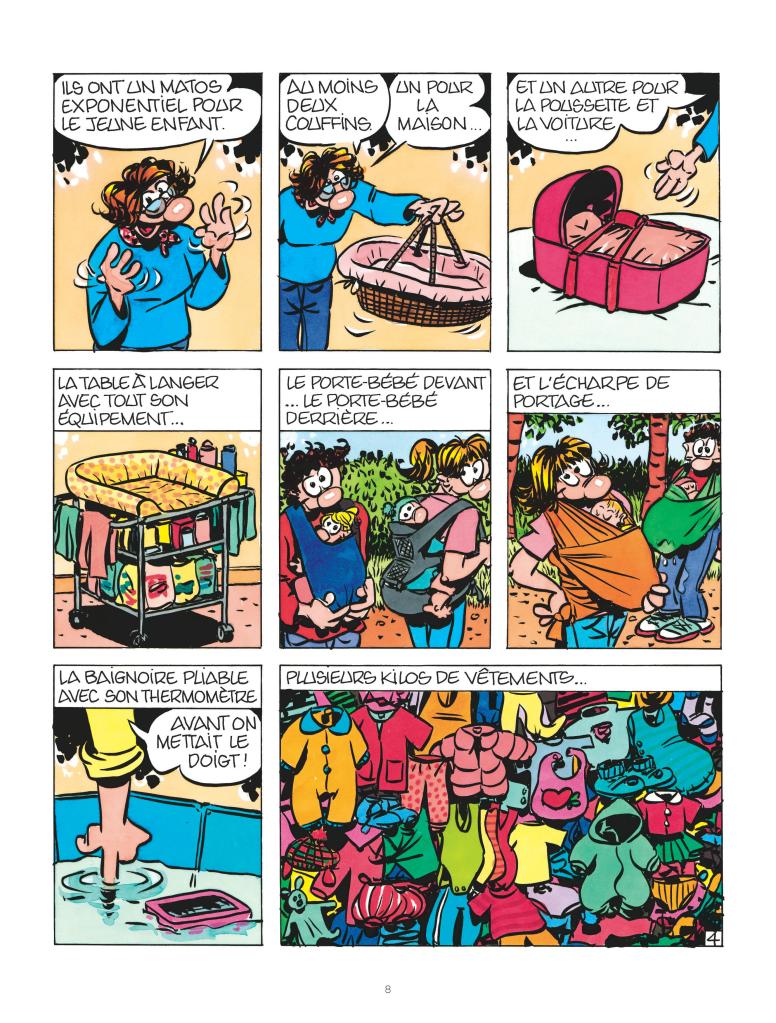 On identifie avec facilité la créatrice d’Harry Mickson grâce son style inimitable, sa gouaille, sa pâte singulière, ses citations croustillantes, bien senties et ses textes désopilants et sincères. On retrouve avec joie son dessin pétillant, loufoque à la fois burlesque et fantasque revêtu pour l’occasion de couleurs pétantes qui rajoutent pas mal de pep’s à l’ensemble.