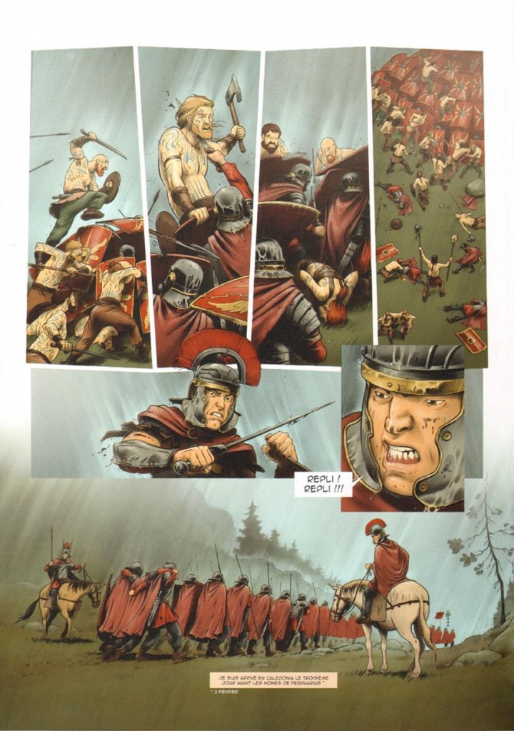 L’histoire commence fort, avec, dans la pénombre, ce qui semble bien être le sacrifice de cinq enfants calédoniens, amenés en bateau pour s’enfoncer dans un lieu d’angoisse. Lucius Aemilius Karus, Centurion, fait face à une tribu dotée d’une magie puissante et secrète. Il nous partage ses pensées et ses doutes… Leta, fille du chef Galam, est une jeune femme intrépide. Sa capture est-elle la clé pour pacifier Caledonia ? Chaque civilisation, avec ses codes, sa hiérarchie, possède ses avantages : savoir utiliser le relief à son avantage, ou n’être qu’un maillon d’une armée massive – la IXème légion. Mais des dissensions naissent également des deux côtés… Le surnaturel monte en puissance, d’une très grande main noire à de forces supérieures qui sèment la pagaille dans le fort romain. Lucius Aemilius a-t-il raison de s’entêter ?