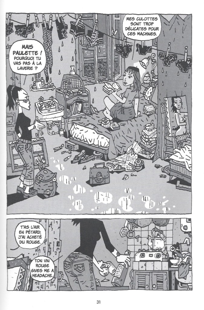 L’intérêt de cette histoire réside dans la narration, la découverte de Paris en 1950 et le sublime dessin de Simon Gane. L’histoire se découpe en quatre chapitres, précédés d’une introduction totalement incroyable : le créateur, Andi Watson, reprend les codes cinématographiques, pour nous présenter à la fois les personnages principaux, dont Paris et les auteurs. Il ne manque plus que les bruits, mais le lecteur est d’emblée embarqué dans une histoire que l’on devine gaie, au rythme enjoué, à l’instar du jazz joué dans les bars de la capitale. Ensuite, l’auteur, maîtrisant d’une main de maître l’art de la narration, nous entraîne tambour battant dans des univers différents qui se côtoient dans le Paris d’après-guerre : la vie de bohème des artistes, des étudiants, logés à plusieurs dans des immeubles bringuebalants, les grands hôtels bourgeois, les concerts dans les sous-sols de Saint-Germain-des-Prés, le Louvre, les rues, les quartiers foisonnants de vie. Le scénariste en profite pour dénoncer les codes écrasants et rigides des familles bourgeoises.
