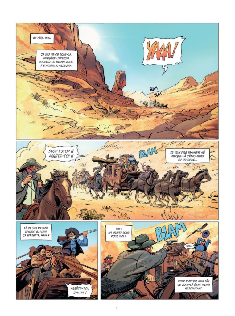 Dans ce merveilleux projet, il donne d’emblée le ton avec une attaque de diligence aussi surprenante que violente. Il installe ensuite malicieusement une intrigue enthousiasmante, juxtaposant avec maîtrise des scènes sulfureuses, violentes et sensuelles. Le lecteur est forcément conquis par une fiction jubilatoire, cynique aux allures de thriller psychologique savoureux. On se régale à suivre les tribulations d’un être machiavélique et misanthrope, opportuniste et menteur à qui tout réussit et un western dans lequel les armes à feu et les prostitués tiennent une place de choix.